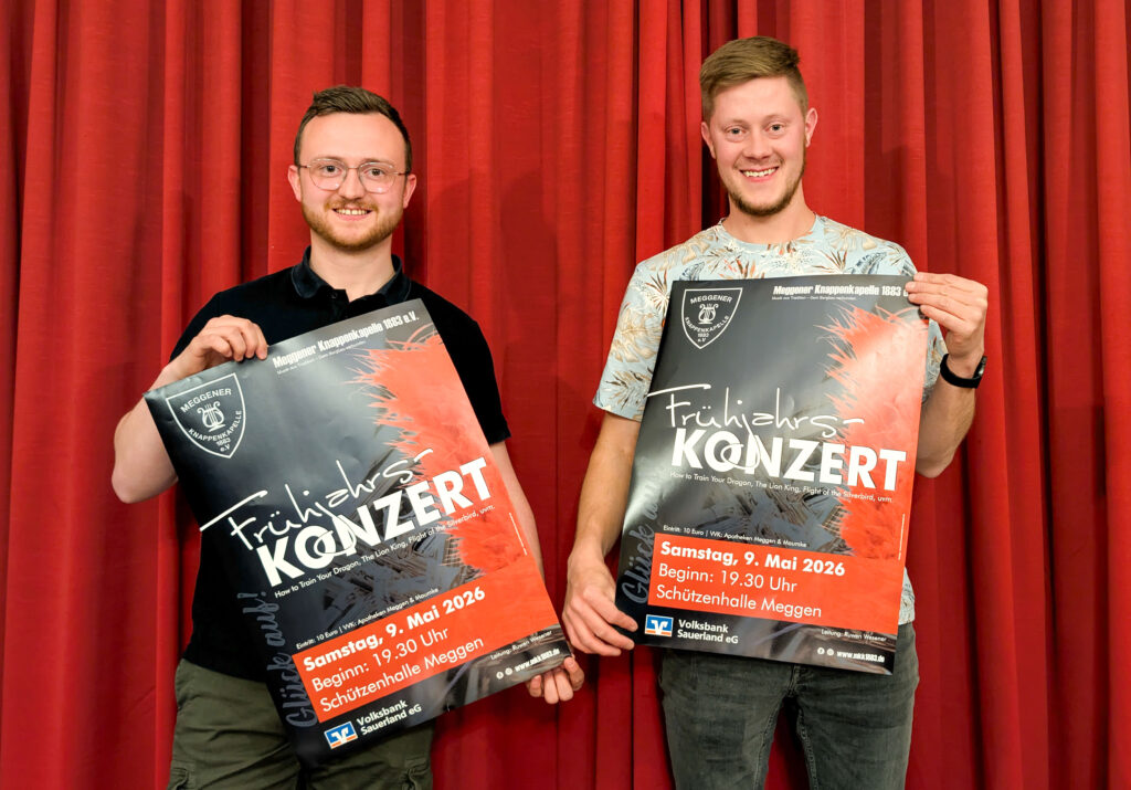 Die Meggener Knappenkapelle lädt am Samstag, den 09. Mai 2026 herzlich zum Konzert in die Meggener Schützenhalle ein.